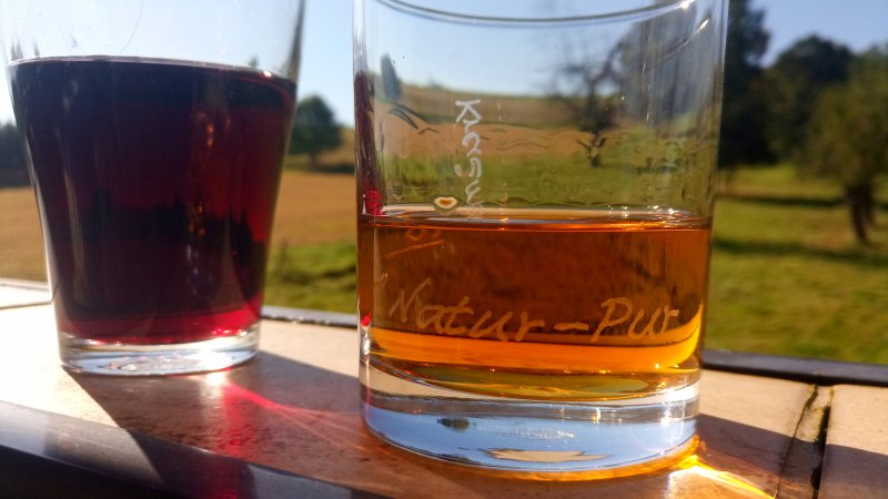So, fertsch, Whiskey alle, Rotwein alle, Pilze geputzt.