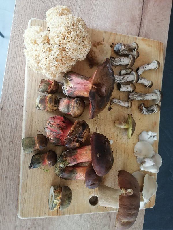 Steinpilze, Hexenröhrlinge und eine Rotkappe. Die grauen Wulstlinge durften im Wald bleiben. Nur die Maroner fehlen ganz. :a020: