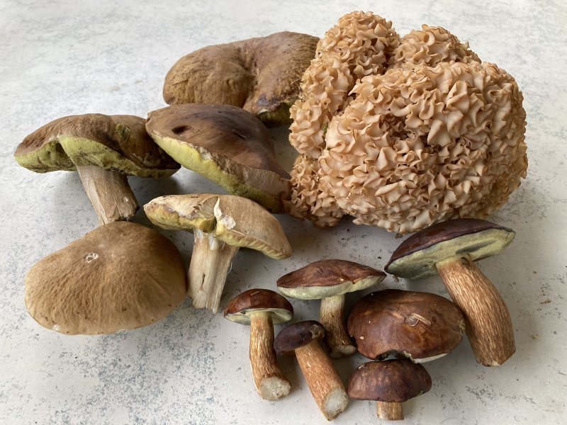 Krause Glucke, Hexenröhrlinge ,Steinpilze und je eine Marohne und Rotfussröhrling .
