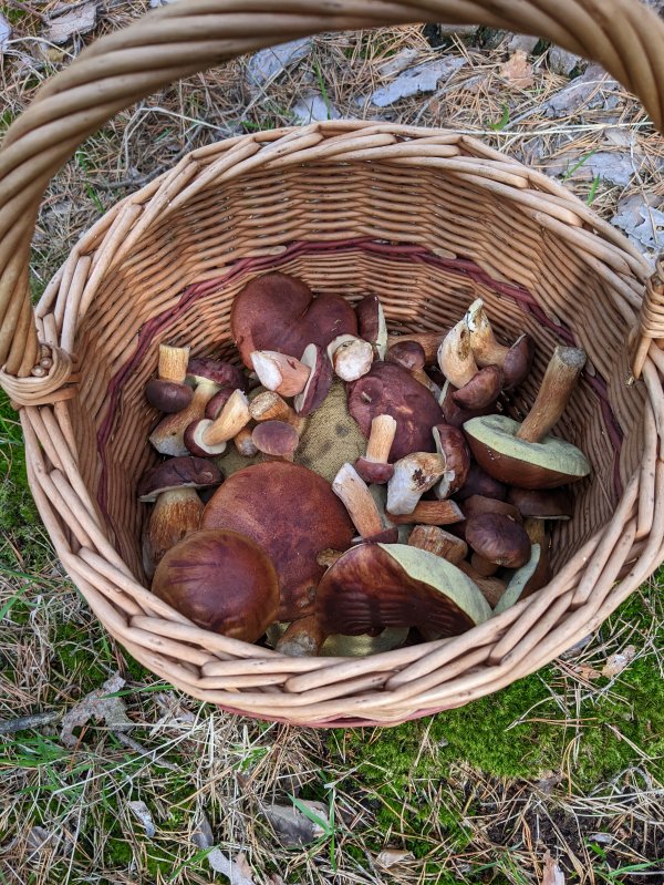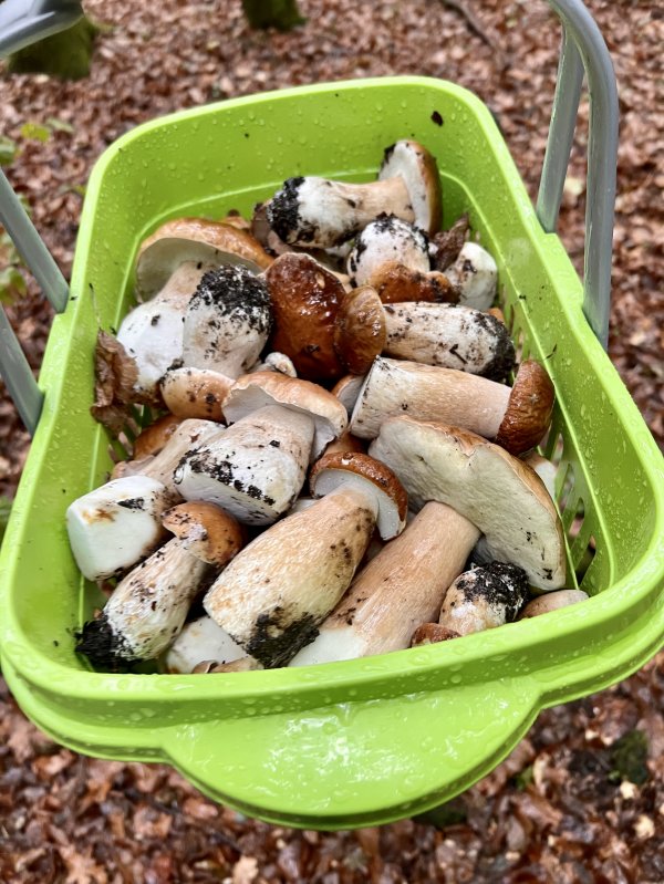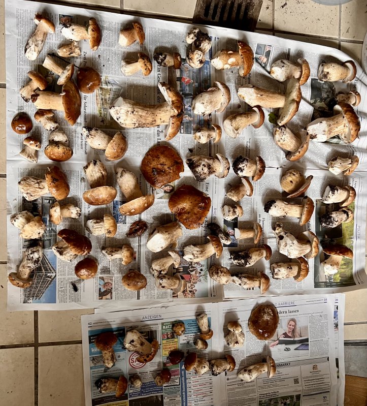 Unsere Ausbeute: einige sehr schöne Steinpilze, Goldröhlinge sowie einige Austernseitlinge. Gibt heute Abend mit Sicherheit ne schöne, frische Rahmpilzpfanne mit Butternudeln - da läuft mir jetzt schon das Wasser im Mund zusammen.
