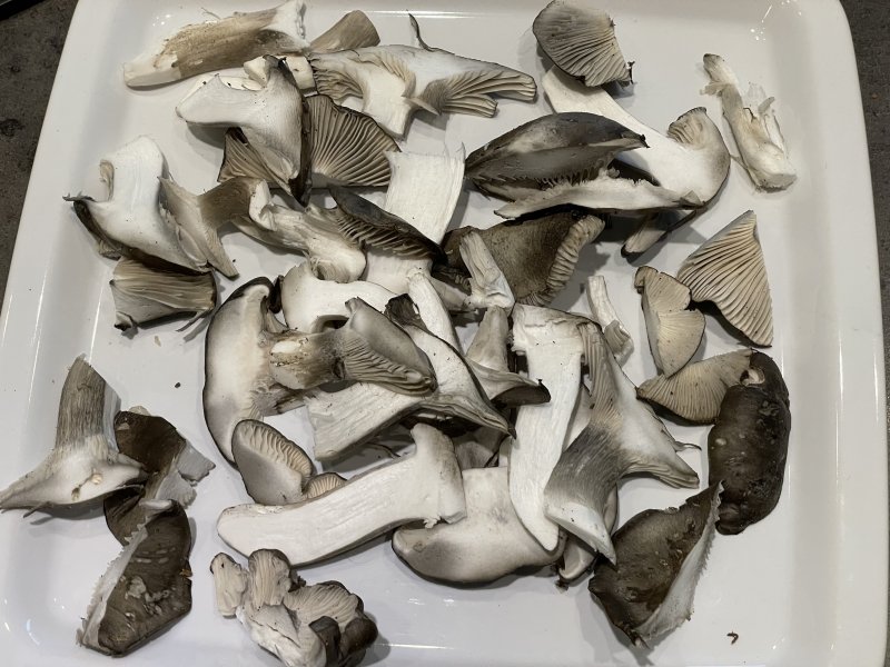 In meinem Wild-West-Bett verwerte ich die Reste der Zucht von Champignons sowie den Kräuterseitlingen. Heute waren die beiden zu finden. Lecker Cheeseburger mit krossen Pilzen.