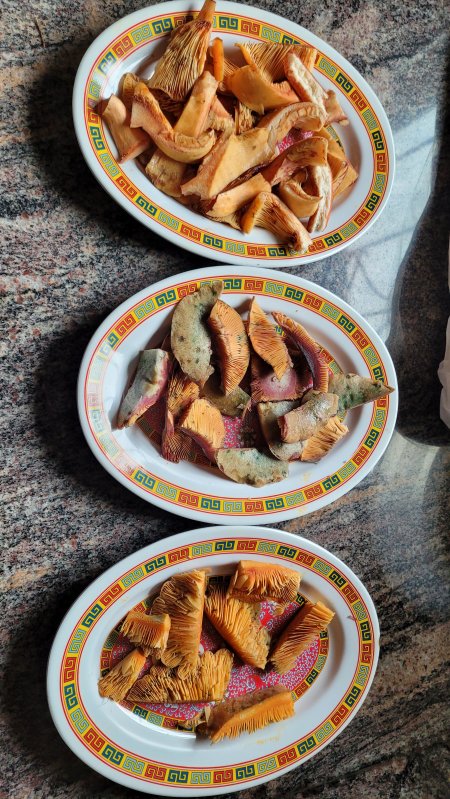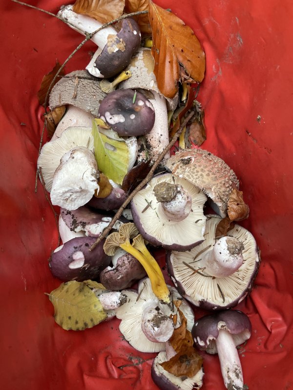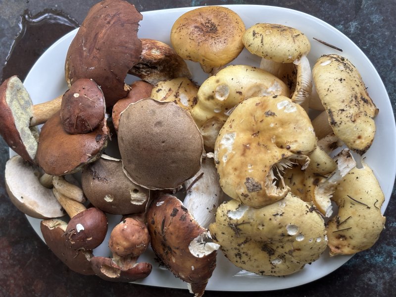 Mit Steinpilzen war es echt gut, hatte 2 mittlere Körbe voll, schon im Wald geputzt und grünliche Schwämme entfernt. Maronen gab