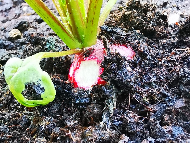 Irgendwas knabbert nachts meine Radieschen an. Sowohl das Grün als auch das Radieschen selbst.