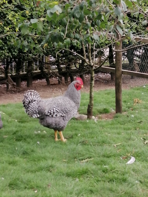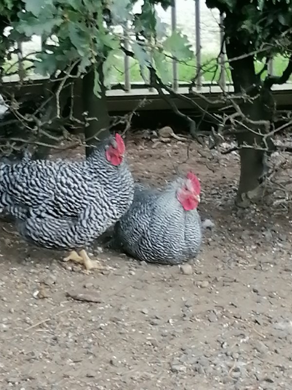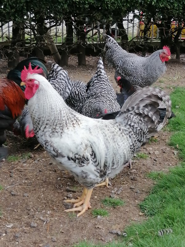 Wir hatten dieses Jahr ja ein paar Kücken. Davon waren 4 Hähne, alle so zahm wie der Rest der Bande. Na ja aber so langsam, kam dann doch ihre Natur durch und es gab ziemlichen Zirkus im Hühnerpark. Also gestern schweren Herzens drei zur Schlachtbank geführt. Als das Federkleid dann runter war, verflog auch meine Trauer. Bin doch auch nur ein Tier... aber ich hab direkt den sich drehenden Spieß vor Augen.