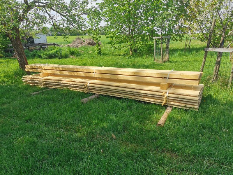 Das Material für das nächste Projekt liegt auch schon bereit. Ich will am Feldrand der an unser Grundstück grenzt einen größeren Hochsitz bauen. Von da aus gibt's am Abend schöne Sonnenuntergänge und häufig Wild zu sehen. Derzeit haben wir da nur eine Bank stehen, aber wir wollen höher sitzen...🤩
