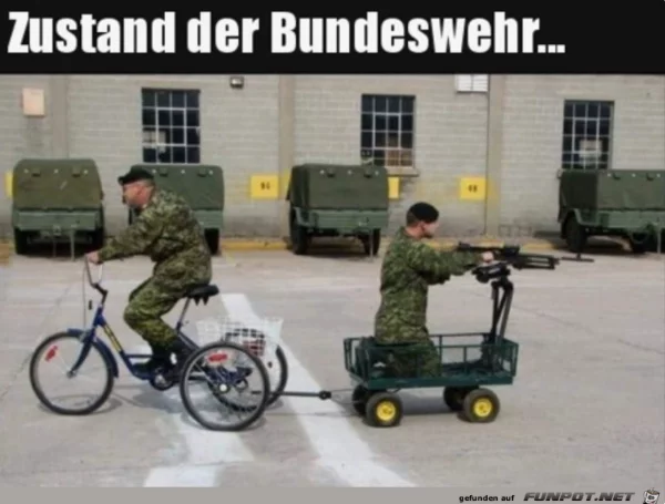 Man beachte den Autor 🤭Im Ernstfall hat der Feind doch sowieso 50 % seiner Soldaten im Lazarett liegen, weil sie sich vor lauter Lachen über uns Bauchfell-Zerrungen zugezogen haben.