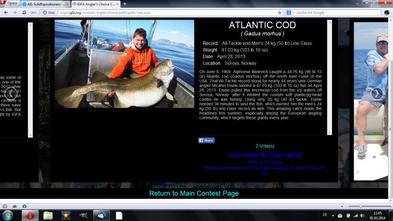 Nun wurde er von der IGFA zusammen mit 9 anderen Weltrekordhaltern nominiert