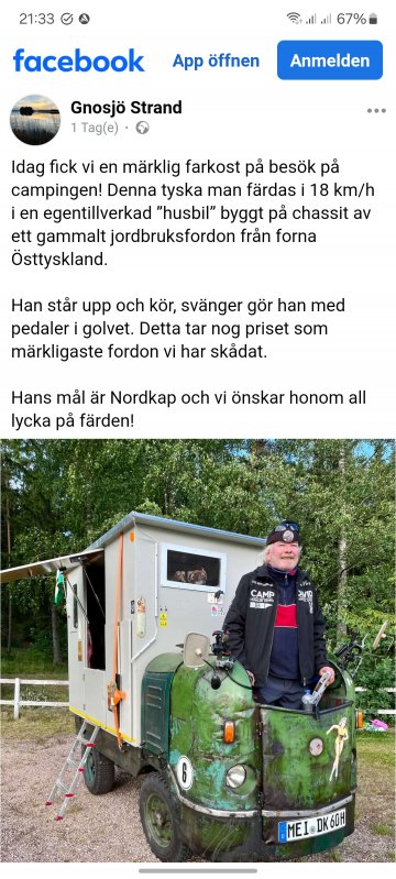 Hier hat einer aus meiner Nähe eine irre Idee, er will mit einer alten "Ameise" von Meißen bis ans Nordkap fahren....👍😁