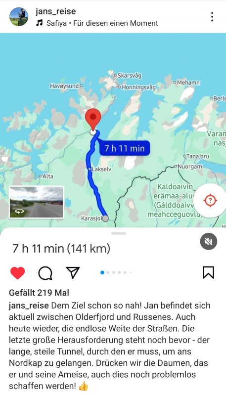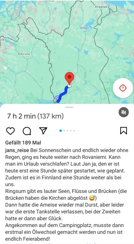 Kurze Zwischeninfo von Jan's Reise. Er hat heute Finnland erreicht - Ameise und Jan sind wohlauf, obwohl er jetzt zwei Tage im Regen "stand" ...... er will über Rovaniemi fahren, Freunde besuchen ......