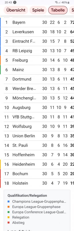 Vielen Dank an unseren @Kroni für die Bonusfrage an Spieltag 30. Es wurden doch viel weniger Punkte erzielt als ich angenommen hatte. Aber so ist die Liga in diesem Jahr und irgendwie ist es auch gut so. Viel ist dadurch natürlich nicht in den Platzierungen passiert, könnt ihr ja selber im ersten Beitrag einsehen. Ich mache es heute kurz und wünsche Euch noch einen schönen Ostermontag!!Danke für die rege Teilnahme an meiner Bonusfrage/n!