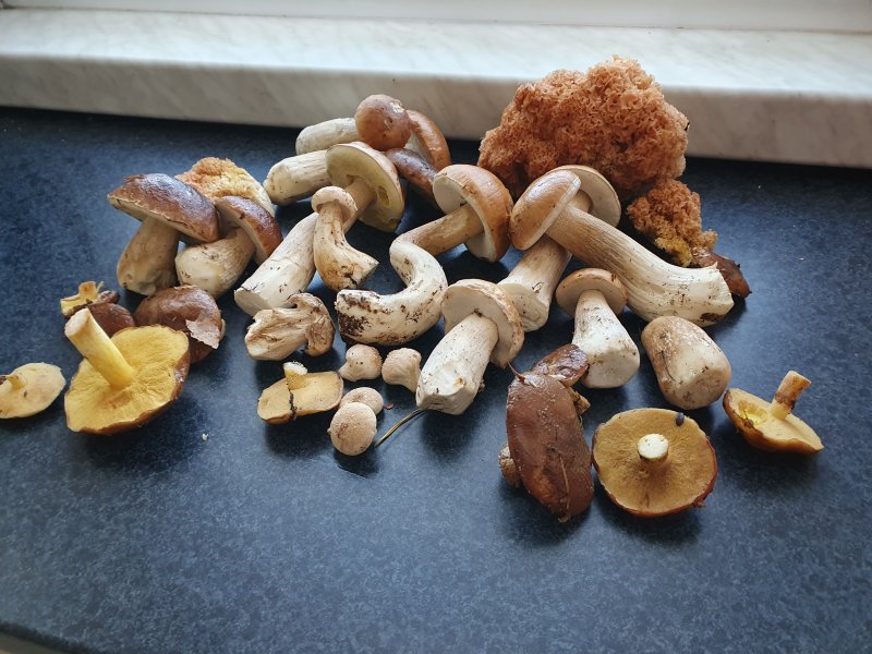 Dazu noch Rotkappen Lärchenröhrlinge und Schirmpilze.