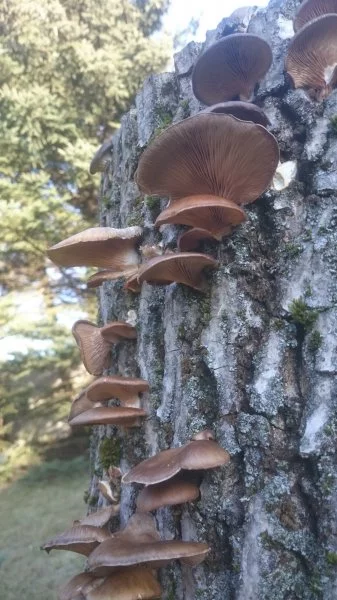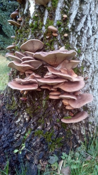 @Gaensejunge guck mal, heute den für mich "richtigen" Austernpilz gefunden. Der Braune daneben ist wieder so einer vom letzten Mal...Soll das da wirklich ein komplett andersfarbiger Austernseitling sein?:a0155:
