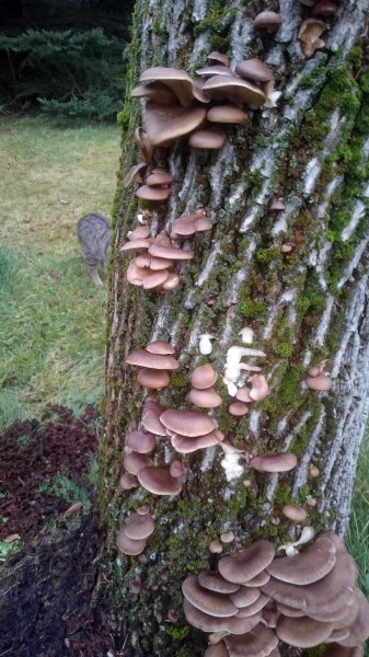 Ich hoffe der Pilz verbreitet noch seine Sporen weiter, ich habe einen kleinen Wald auf unserem Grundstück. Deshalb bleiben ein paar Seitlinge am Stamm....:-)