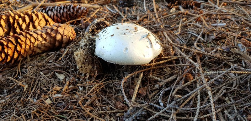 Am Freitag hatten wir hier mal für etwa eine halbe Stunde etwas Regen und zwei Tage später zeigte sich ein einsamer Champignon im Garten.