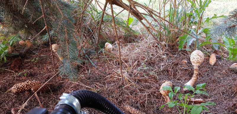 Heute habe ich wieder 3 Parasole hinter meiner Teichfilteranlage entdeckt. Scheinbar mögen die Parasole das algenhaltige Wasser, was beim reinigen des Filters dort abgelassen wird.
