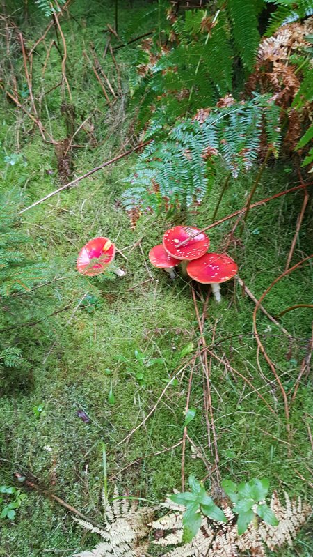 War gestern auch mal für ´ne Stunde auf "Kontrollgang": Obwohl der Wald immer noch trocken ist, sind es am Ende 5 essbare Pilze geworden (Rotfußröhrlinge, Marone und Ziegenlippe).